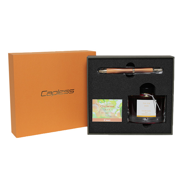 日本の美しい情景から創造された万年筆用インキ色彩雫の「燈路」をオリジナルパッケージにセットした限定仕様です。
