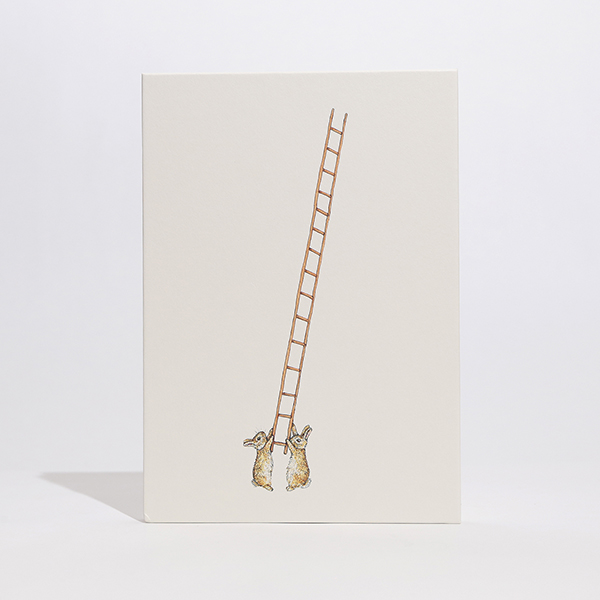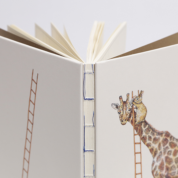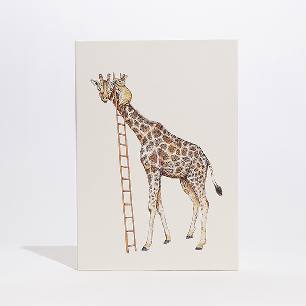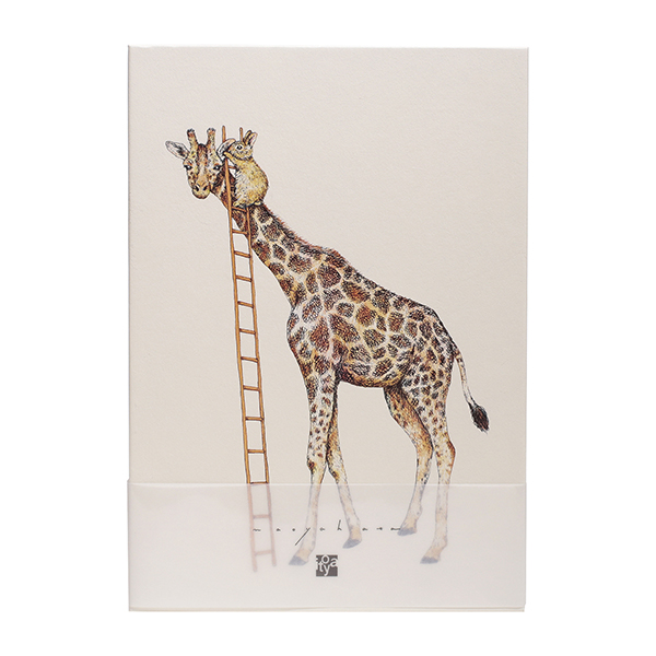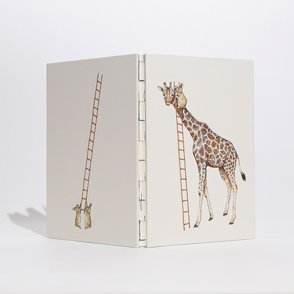 背の高いキリンにはしごを使って内緒話をするウサギを描いた、若手クリエイターの秦直也とコラボレーションした伊東屋オリジナルノートです。