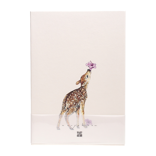 つつじの蜜を吸って遊ぶ小鹿が描かれた、若手クリエイターの秦直也とコラボレーションした伊東屋オリジナルノートです。