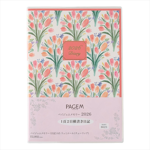 ペイジェムメモリー日記リュミエールシリーズは水彩タッチの優しい花柄が特徴の日記です。