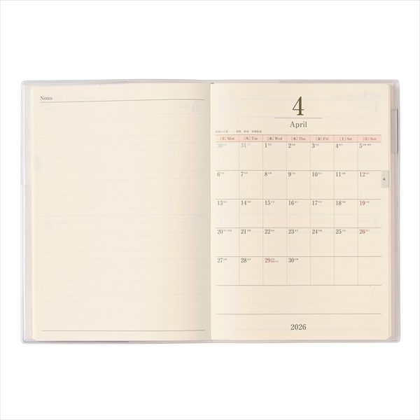 【月間ページ】見開き1ヵ月のベーシックなブロックタイプ(月曜始まり)。