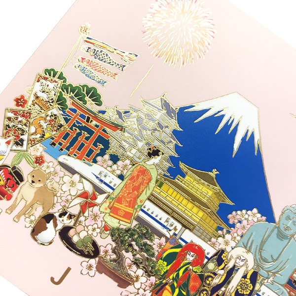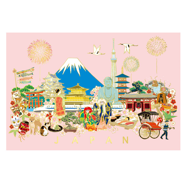 日本全国の魅力がつまった、にぎやかで楽しいデザインの和風カードです。
