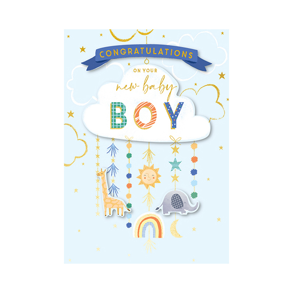 メリーモビールを象った3Dカットアウトマウントが可愛らしい出産祝いカード。
