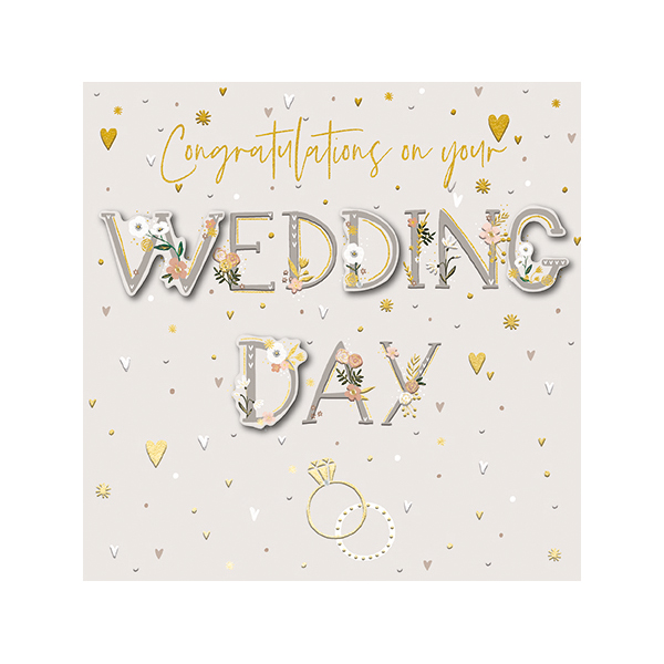 グリーティングの一部が3Dカットアウトマウントになったウェディングカード。