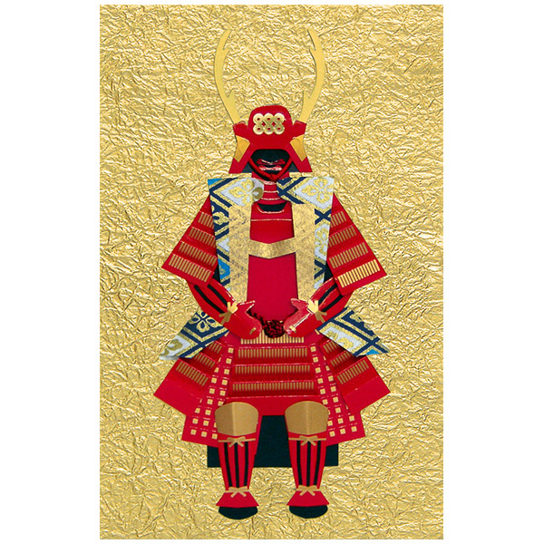 五月人形のような鎧兜を立体的にかたどったカードです。定形郵便として送れます。扇の透かしが入った中紙入りです。