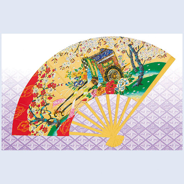 扇面に御所車が描かれたカードです。
