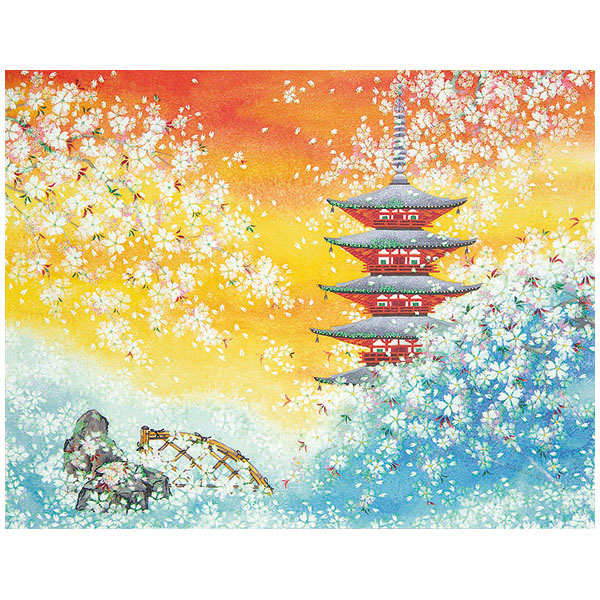 ※表面、裏面の絵が繋がった縦型の二つ折りカードとなります。
