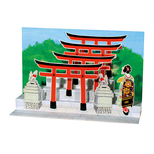 京都の名所をかたどったポップアップカードです。封筒などを合わせた重さでは定形外となる場合がございます。扇の透かしが入った中紙入りです。