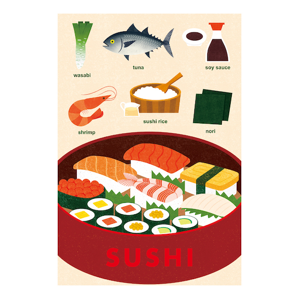 料理や食材のイラストで、日本の“味”の魅力を表現しました。