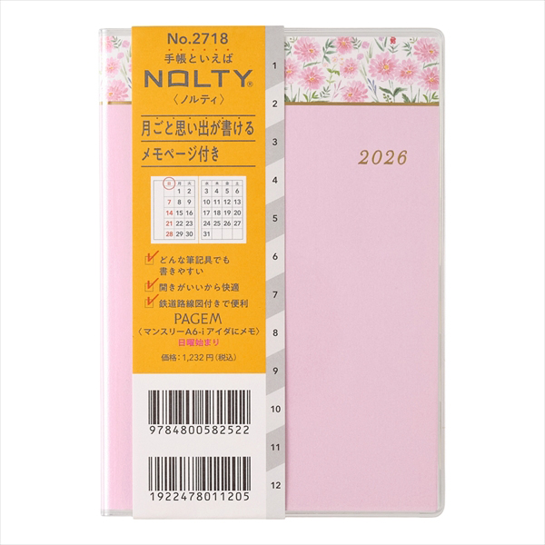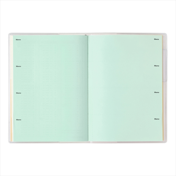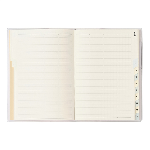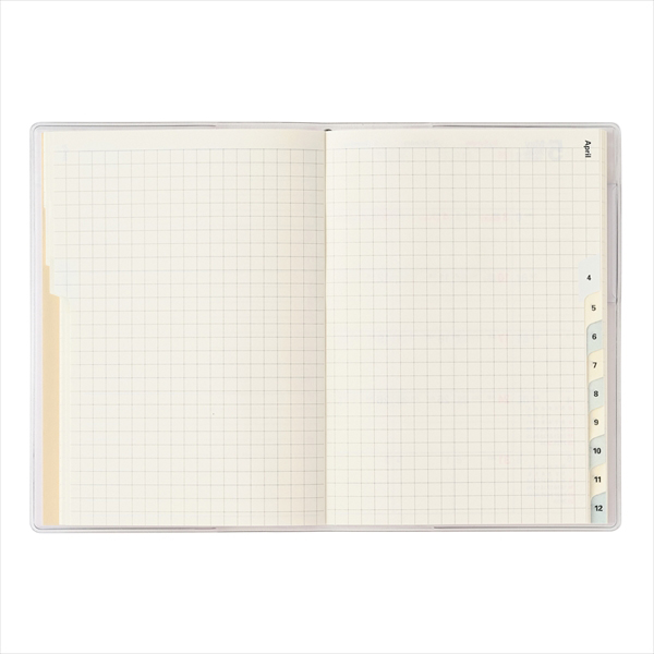 PAGEM by NOLTY(ペイジェム バイノルティ)のマンスリー手帳、A6-iアイダにメモシリーズは、各月のアイダにメモページと方眼ページが2ページずつ付いているのが特長です。