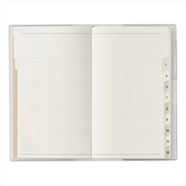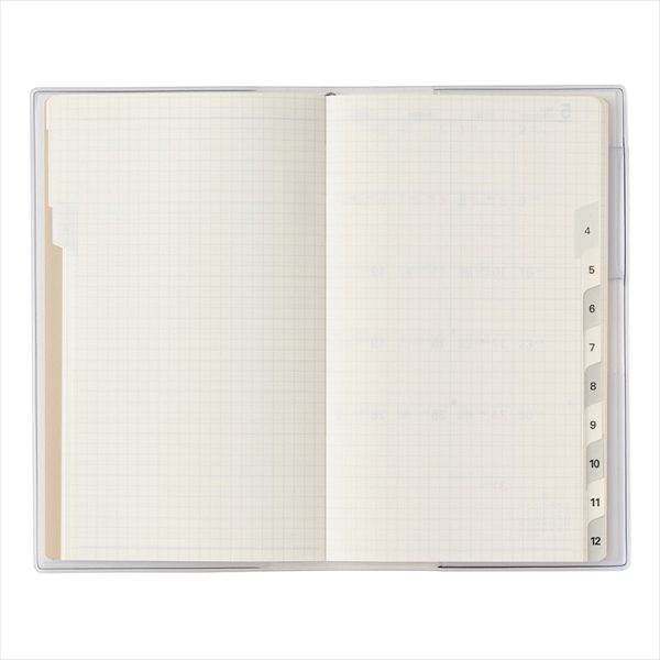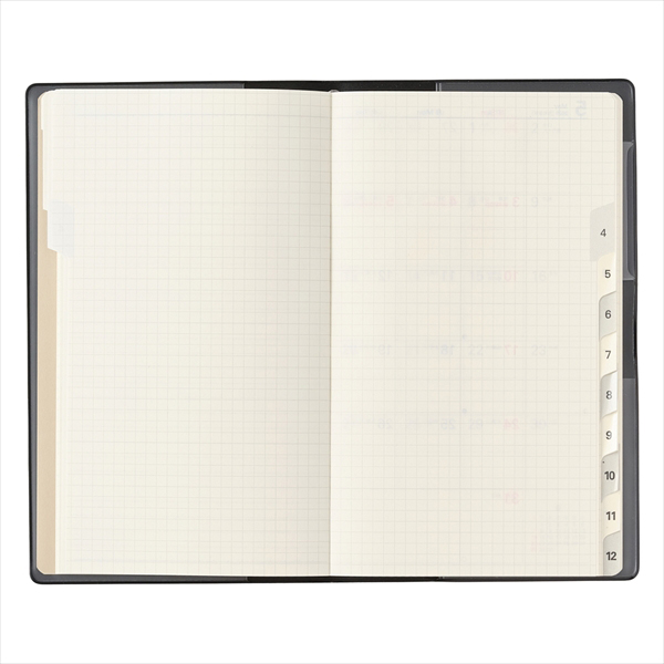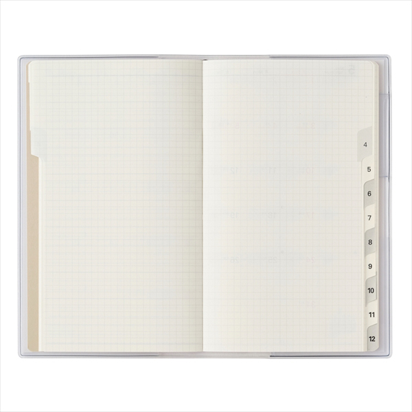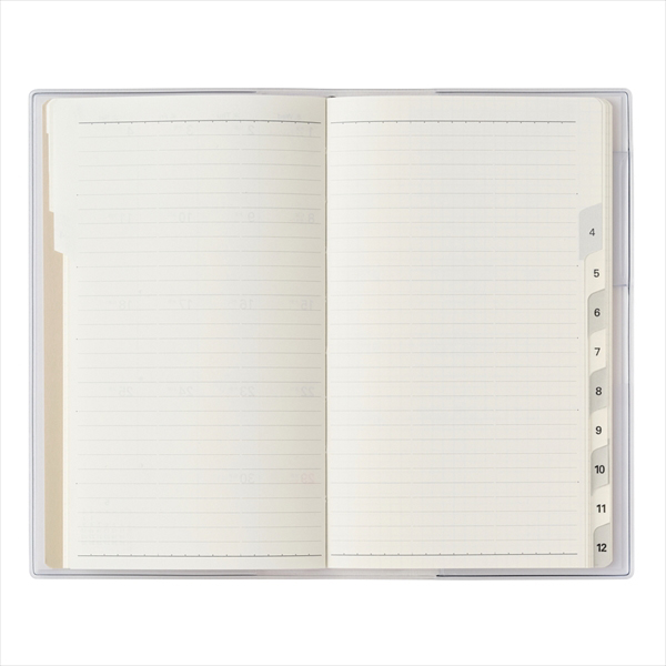 NOLTY(ノルティ)のマンスリースリム-iアイダにメモは、各月のアイダにメモページと方眼ページが2ページずつ付いているのが特長です。