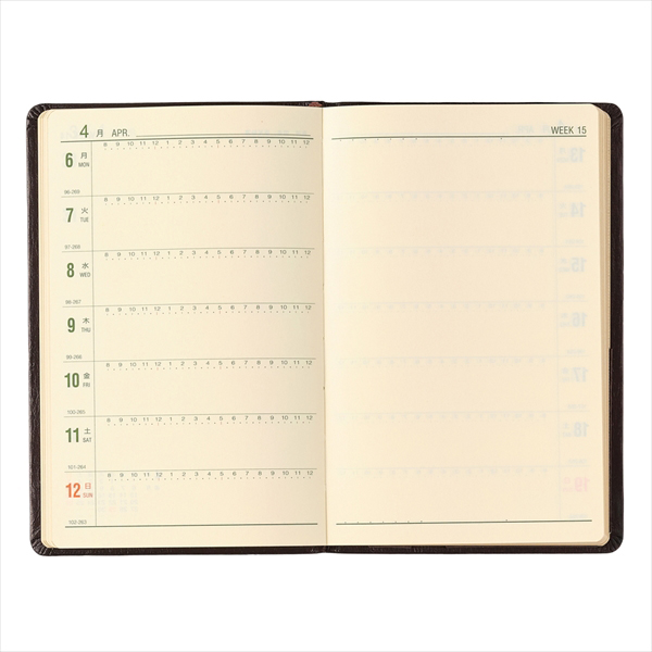 【週間ページ】見開き1週間のレフトタイプ(月曜始まり)。