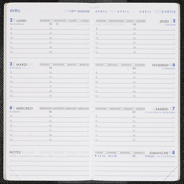 ●別冊:アドレス帳(インデックス有、三方金付け)x1冊、イヤープランナー(蛇腹式、1ページ1ヶ月ホリゾンタル、フランス国内電話サーヴィス一覧付)