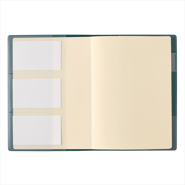 カバー前側には3段名刺ポケット、カバー後ろ側には名刺ポケット・ペンホルダーが付いています。