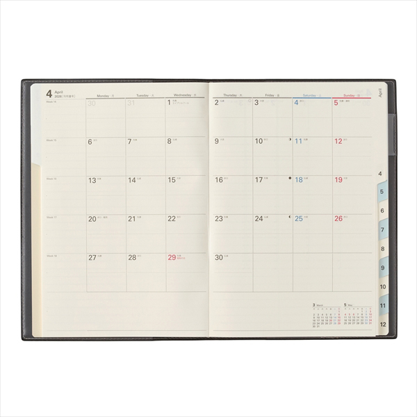 月間と週間が連続したページ構成で、月ごとにまとめて予定を組むのに適しているNOLTY(ノルティ)人気のウィークリー手帳。