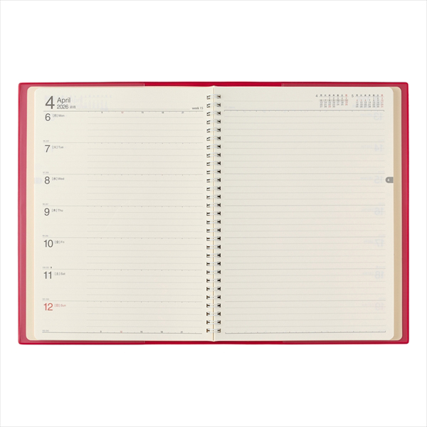 平らに開いて書きやすいNOLTY(ノルティ)のリング式ウィークリー手帳