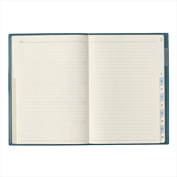 「薄くてもたくさん書ける」ということを追求したカレンダー+メモタイプのNOLTY(ノルティ)のマンスリーダイアリー。二つ折りのA4用紙が手帳カバーにすっきり収まる表紙サイズ設計。