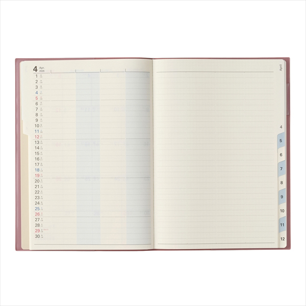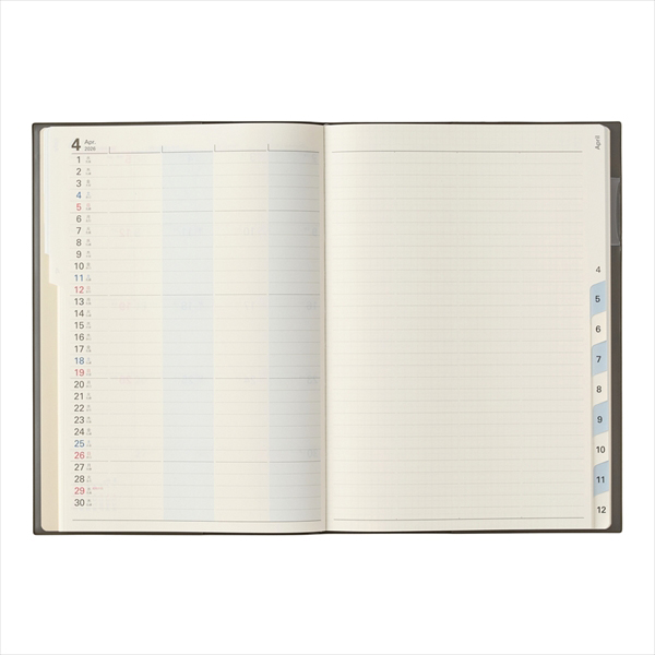 複数のプロジェクトや案件の管理をしたい社会人にもおすすめのNOLTY(ノルティ)の人気手帳。月間カレンダー+月間横ケイ+方眼メモページの薄型手帳