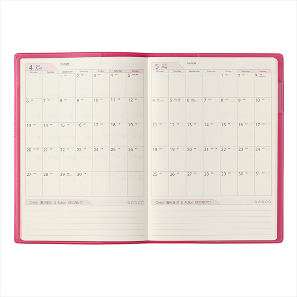 【月間ページ】見開き2ヶ月のベーシックなブロックタイプ(月曜始まり)。