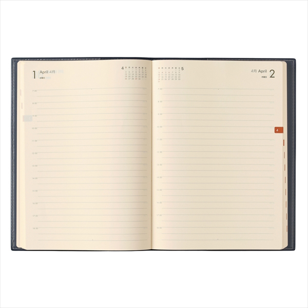 【日記欄】見開きで2日分の記録ができるデイリータイプ。