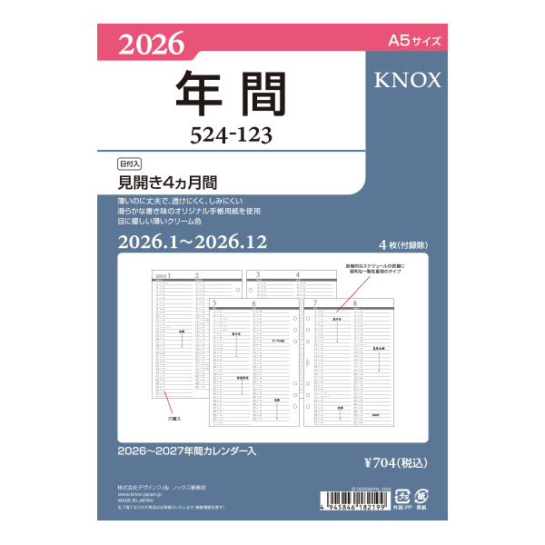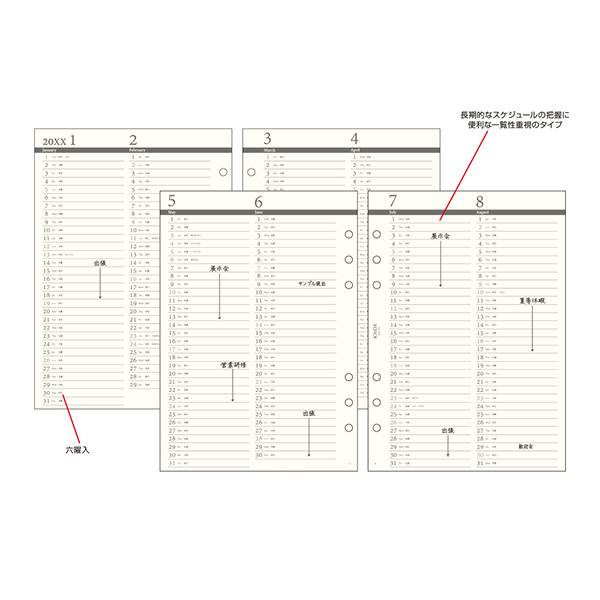 1ページ2ヶ月タイプで、かさばらない
