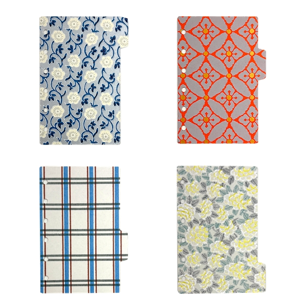 システム手帳を開いた瞬間、まるで宝箱を開けたかのように色鮮やかな柄が目に飛び込み、心が躍ります。伊東屋限定色でミモザ、格子、七宝、小花の4柄を1セットにし、バイブルサイズとミニ6サイズの2種をご用意。日々のページをめくるたびに新鮮な喜びを感じられます。