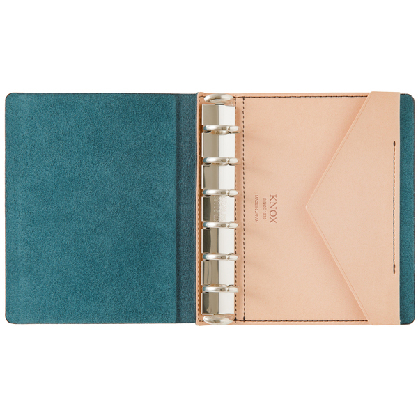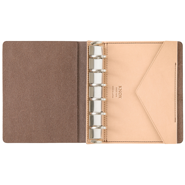 張り感のある薄く漉いたポケットは書くことを邪魔せずリングに干渉しないため、リフィルをたっぷりと収納できる手帳に仕上がっています。