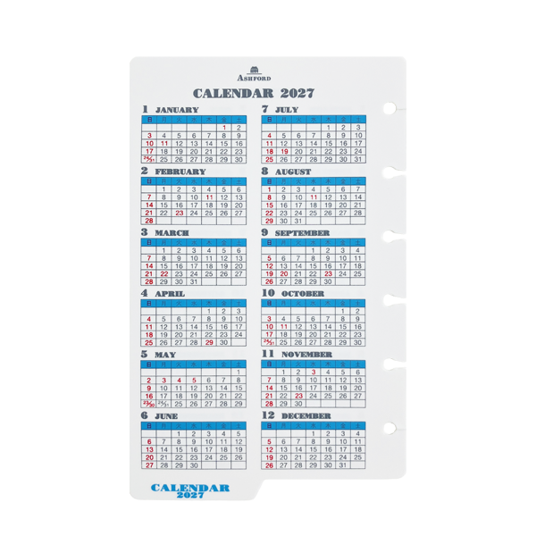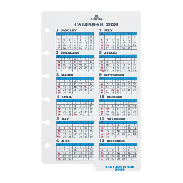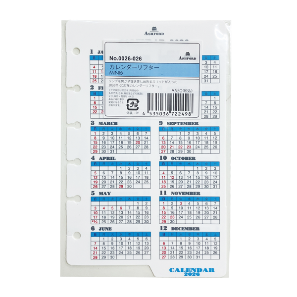 アシュフォード26 システム手帳リフィル カレンダーリフター MINI6