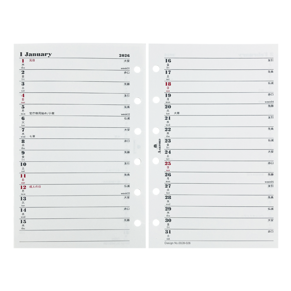 TOP 手帳 システム手帳 システム手帳リフィル 26 システム手帳リフィル 月間ダイアリー バーティカル式 MINI6