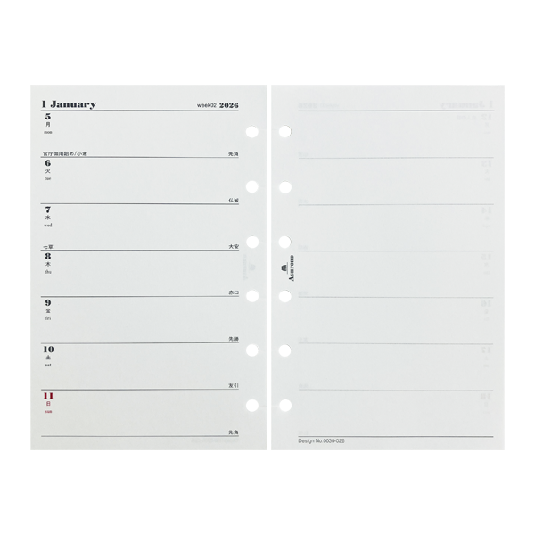 TOP 手帳 システム手帳 システム手帳リフィル 26 システム手帳リフィル 週間ダイアリー レフト式 MINI6