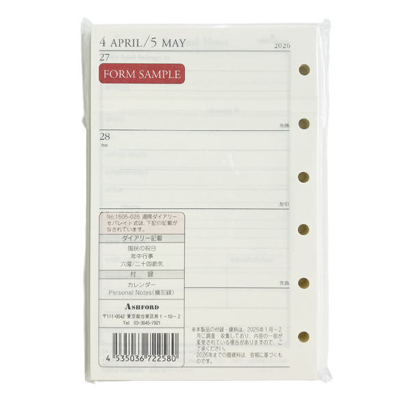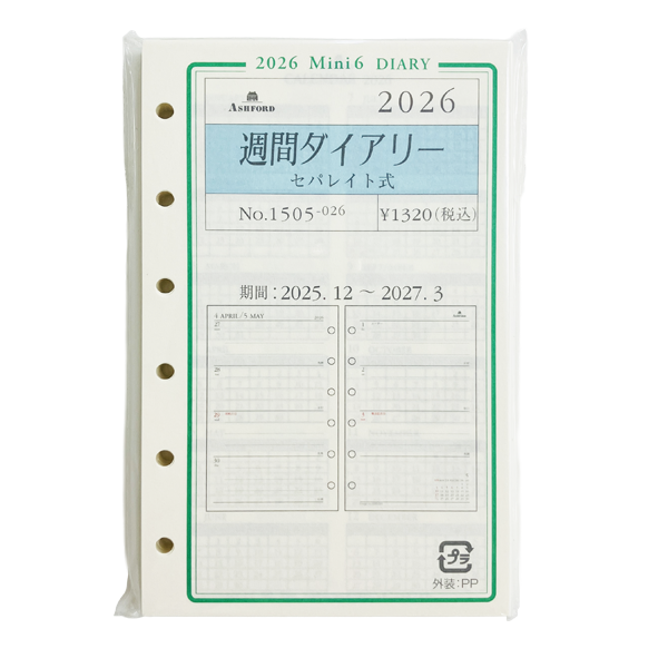 見開き1週間式で、1日のスペースを均等にしたダイアリーです。