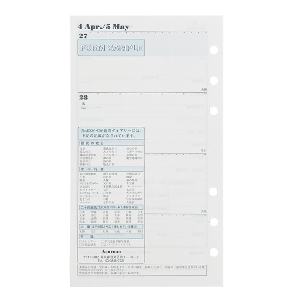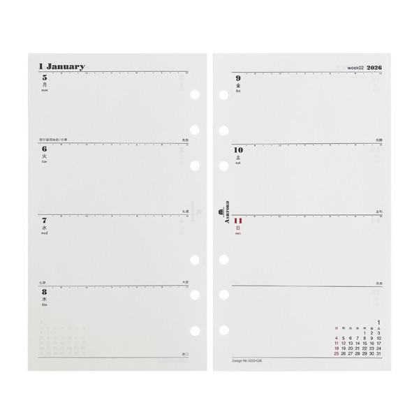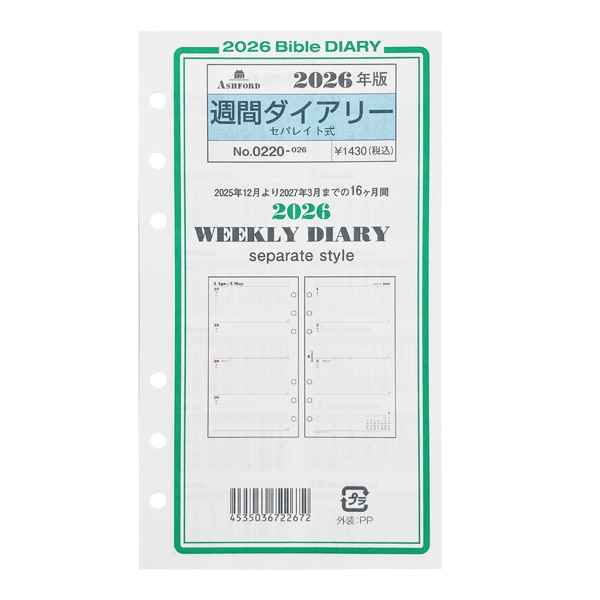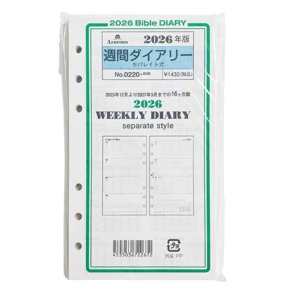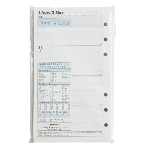 見開き1週間式で、1日のスペースを均等にしたダイアリーです。
