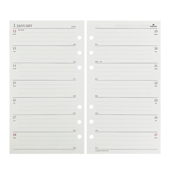 日付入りのダイアリーリフィルです。