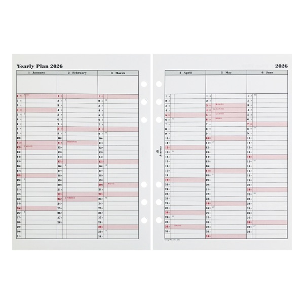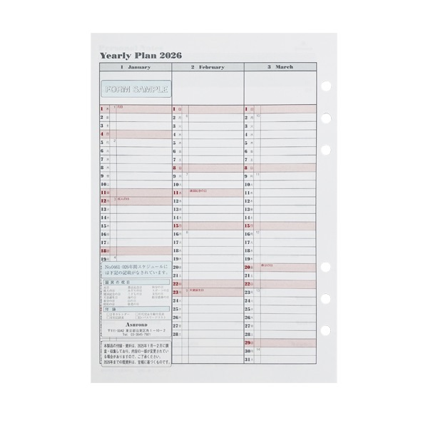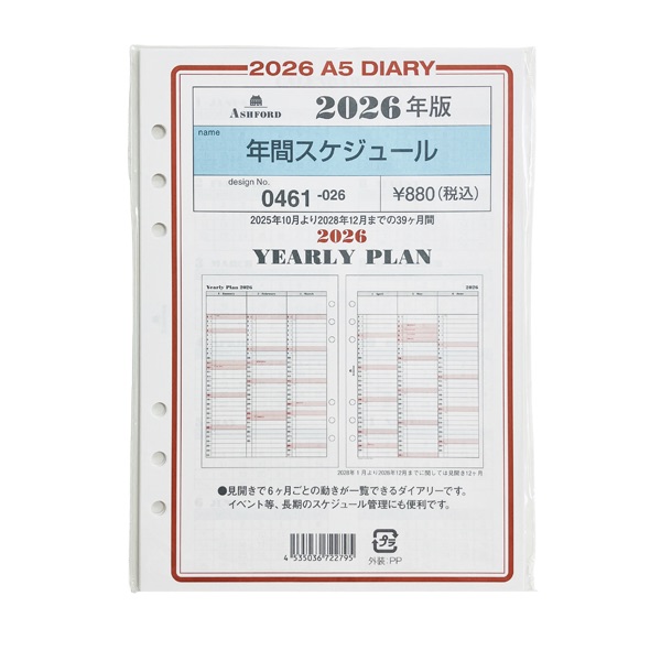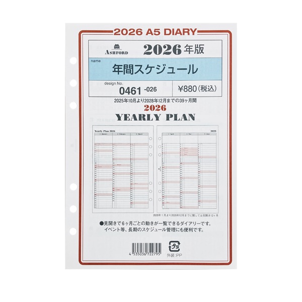 アシュフォード26 システム手帳リフィル 年間スケジュール A5