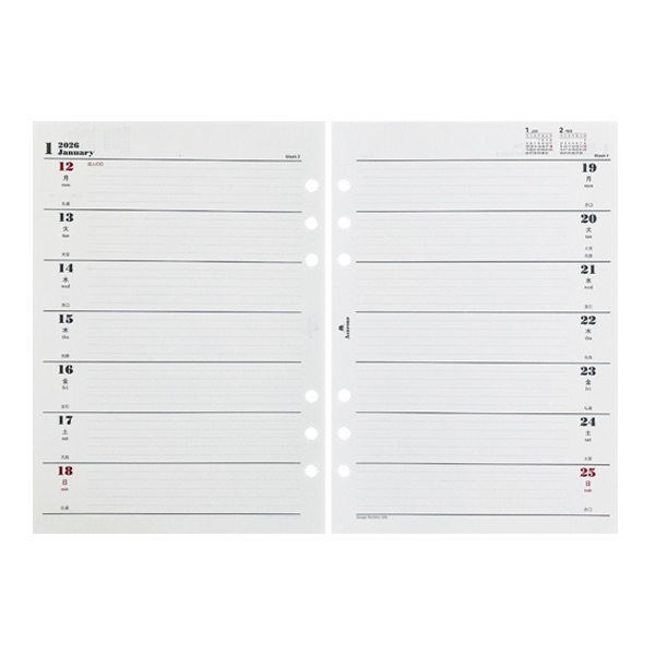 TOP 手帳 システム手帳 システム手帳リフィル 26 システム手帳リフィル 週間ダイアリー 見開き2週間式 A5