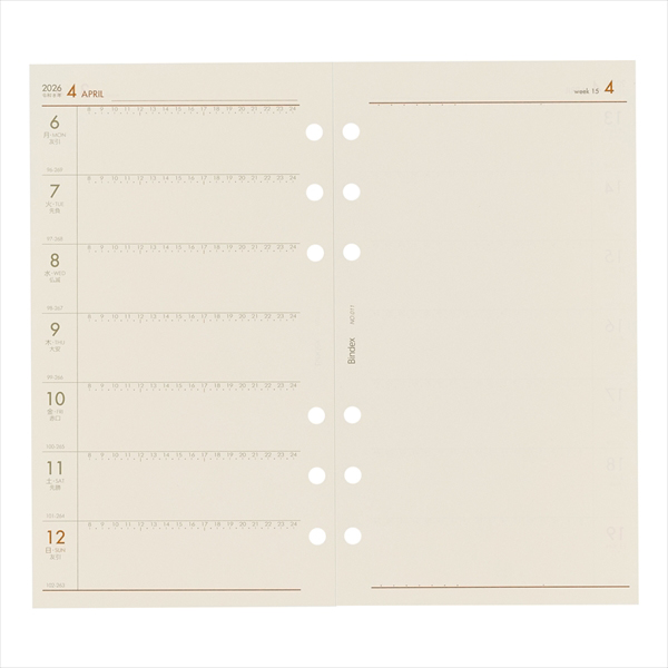 能率手帳の会社がつくるシステム手帳ブランドBindex by NOLTY(バインデックス バイ ノルティ)のリフィル(バイブルサイズ)。