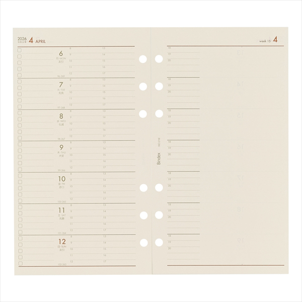 能率手帳の会社がつくるシステム手帳ブランドBindex by NOLTY(バインデックス バイ ノルティ)のリフィル(バイブルサイズ)。