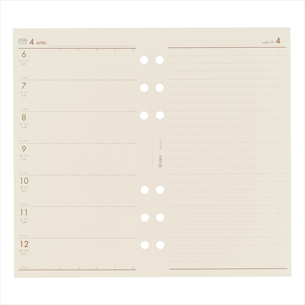 能率手帳の会社がつくるシステム手帳ブランドBindex by NOLTY(バインデックス バイ ノルティ)のリフィル(バイブルサイズ)。