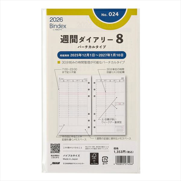 日本能率協会26 バイブル 週間ダイアリー バーチカルタイプ ウィークデー重視型