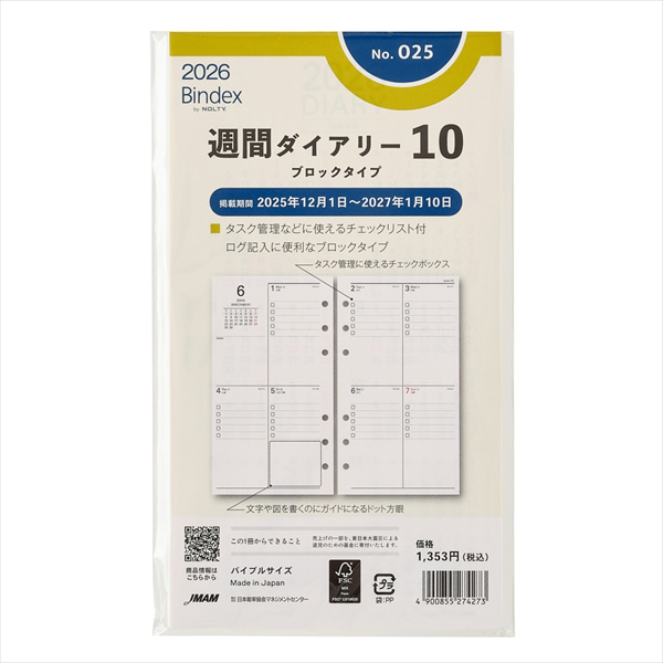 日本能率協会26 バイブル 週間ダイアリー ブロックタイプ