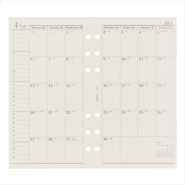 能率手帳の会社がつくるシステム手帳ブランドBindex by NOLTY(バインデックス バイ ノルティ)のリフィル(バイブルサイズ)。