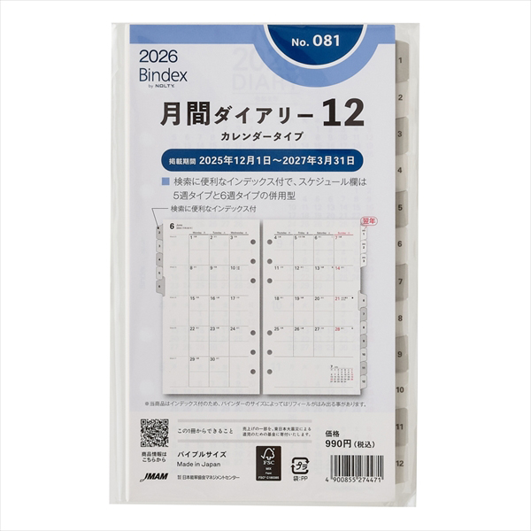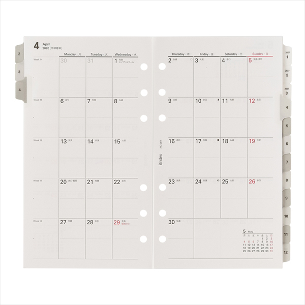 能率手帳の会社がつくるシステム手帳ブランドBindex by NOLTY(バインデックス バイ ノルティ)のリフィル(バイブルサイズ)。