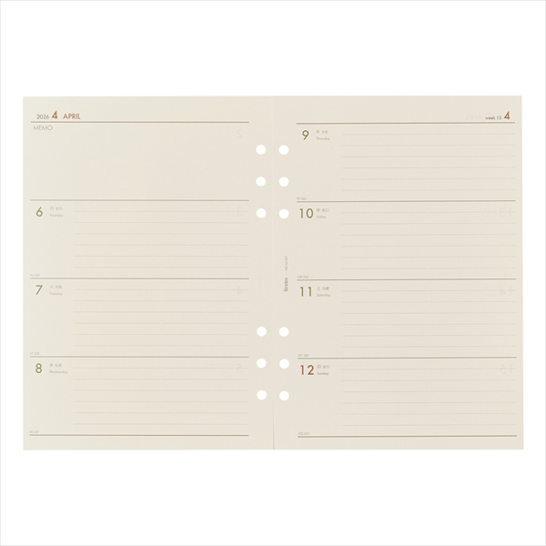 TOP 手帳 システム手帳 システム手帳リフィル 26 A5 週間ダイアリー メモタイプ 罫線入り