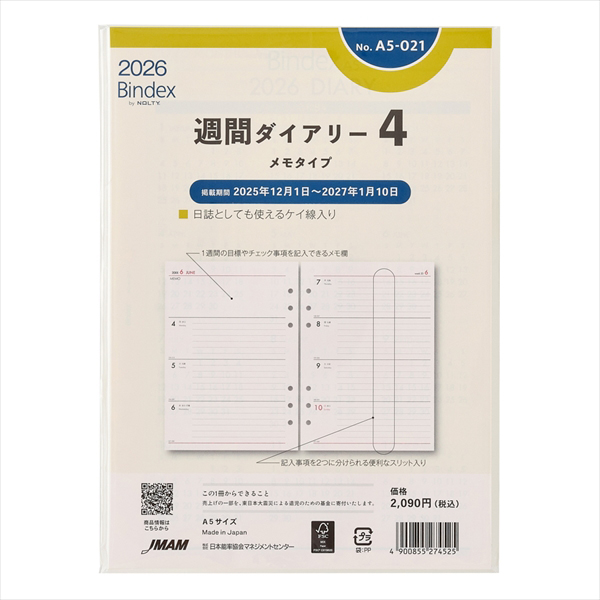 日本能率協会26 A5 週間ダイアリー メモタイプ 罫線入り