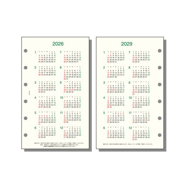 4年分(2026年~2029年)のカレンダーです。