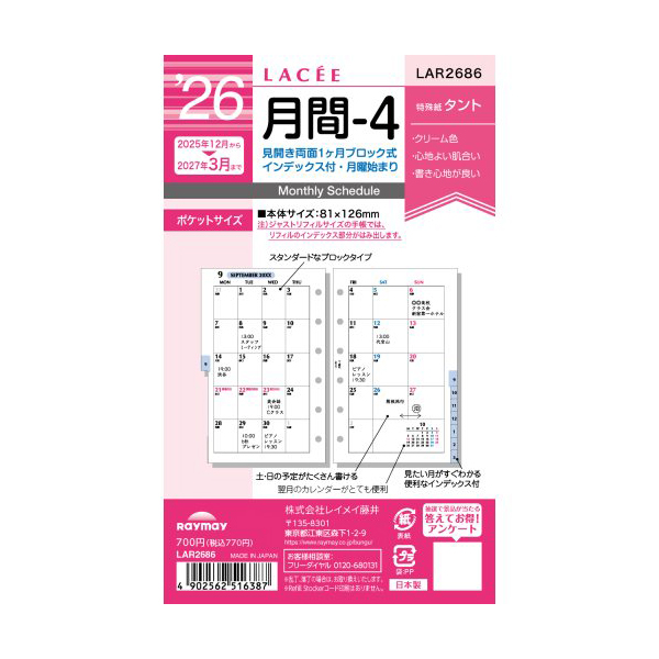 ●月間:見開き両面1ヶ月ブロック式 インデックス付