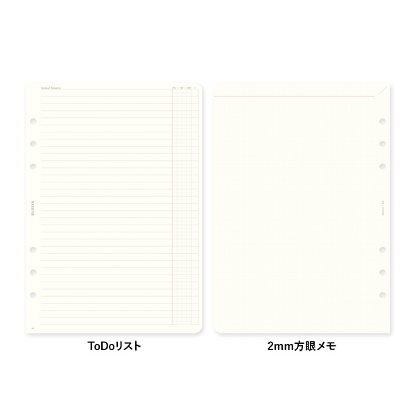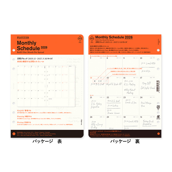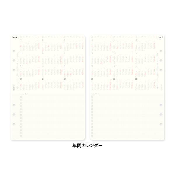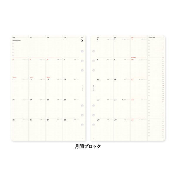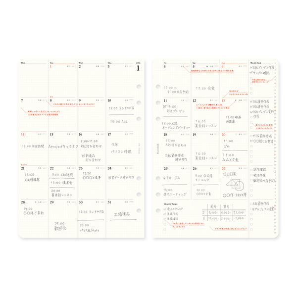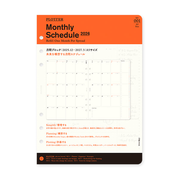 「PLOTTER」オリジナルのリフィル専用用紙を使った月間タイプのスケジュールリフィル。