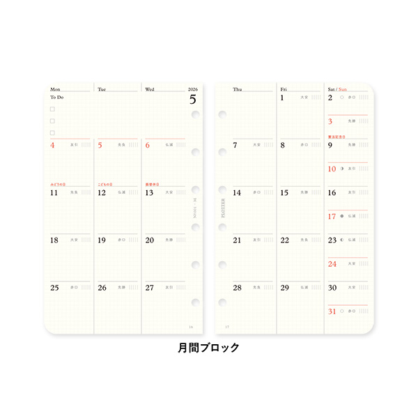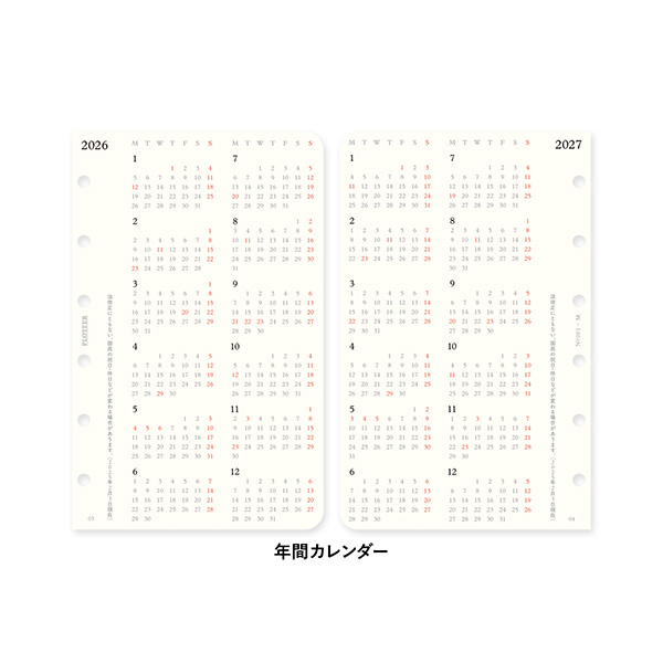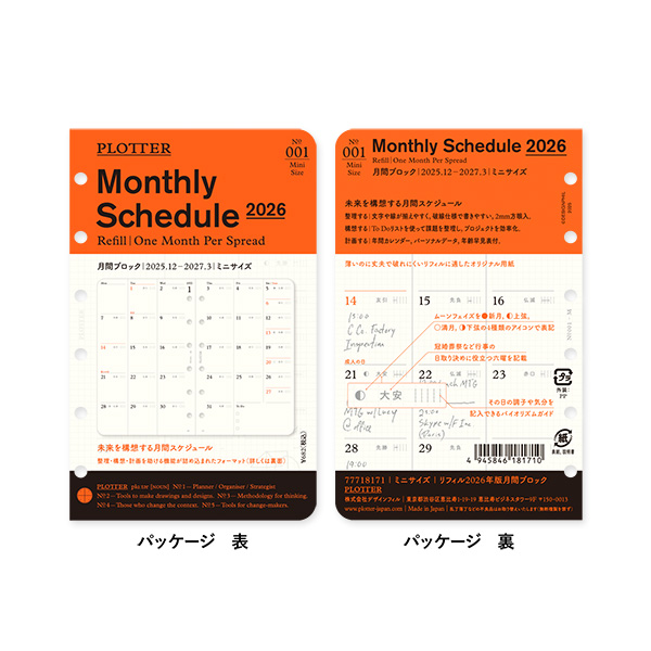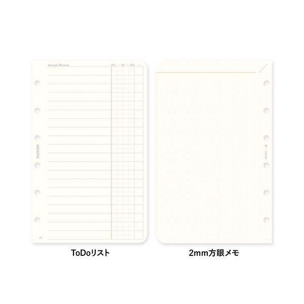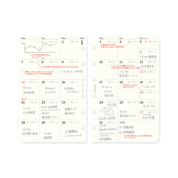 「PLOTTER」オリジナルのリフィル専用用紙を使った月間タイプのスケジュールリフィル。