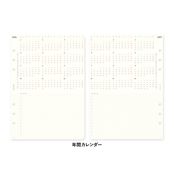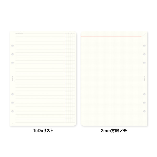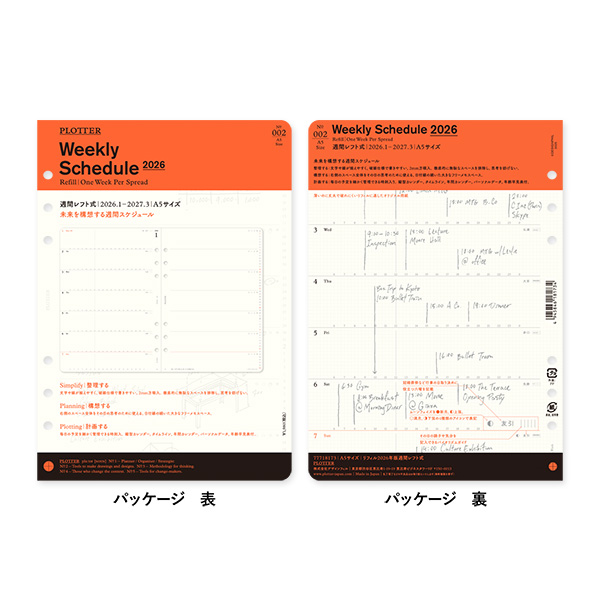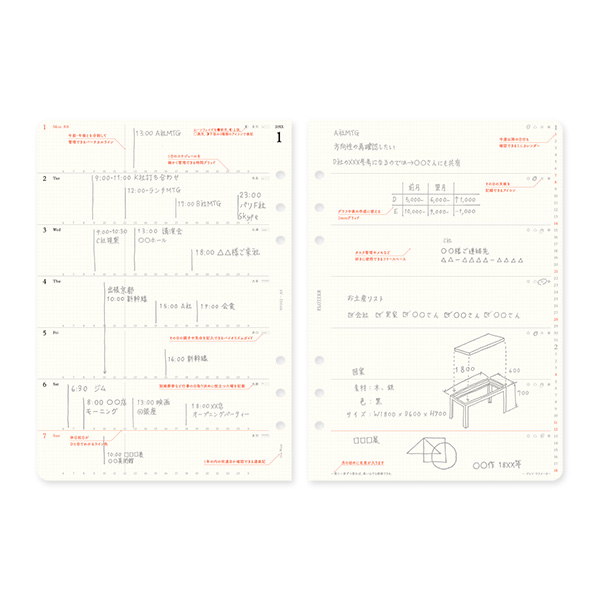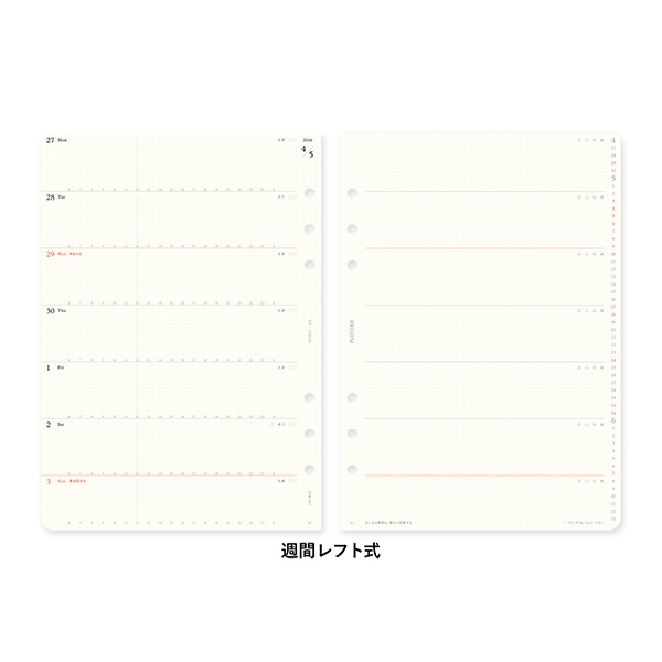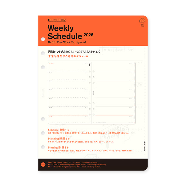 「PLOTTER」オリジナルのリフィル専用用紙を使った週間タイプのスケジュールリフィル。