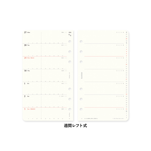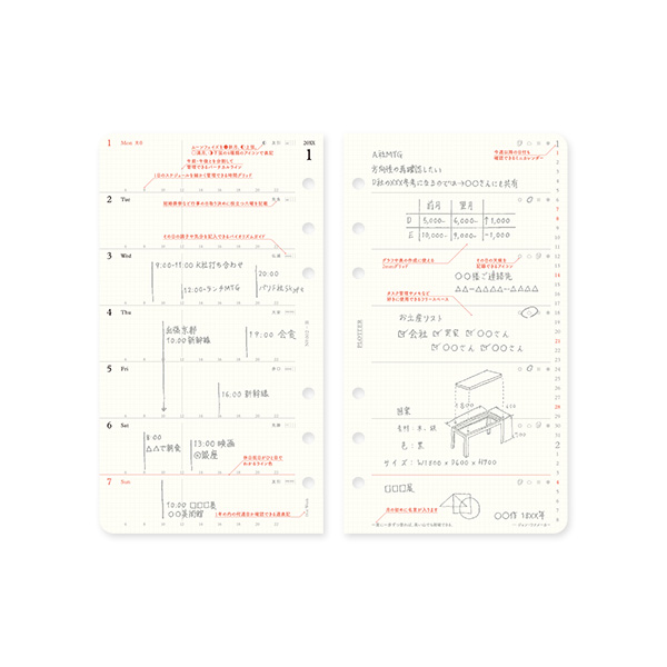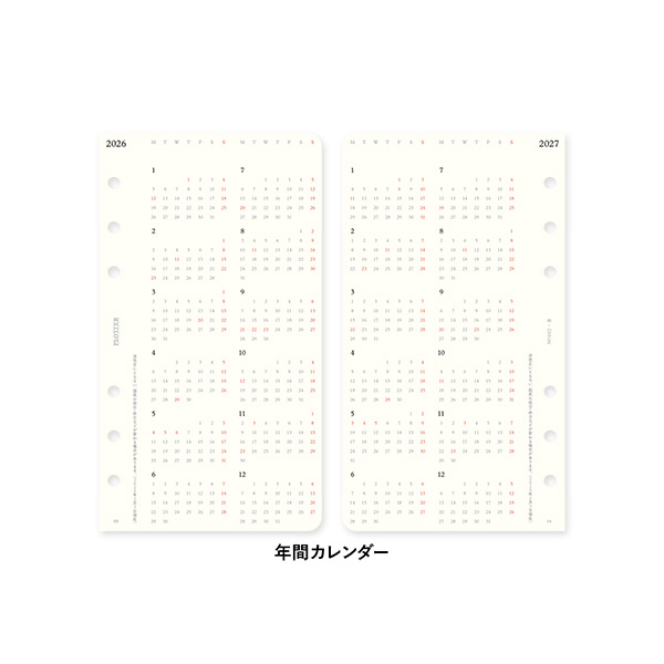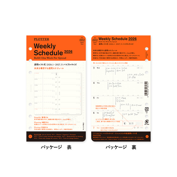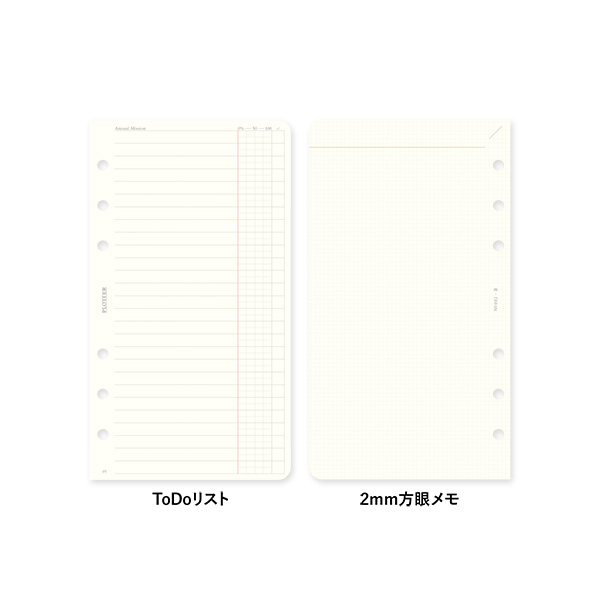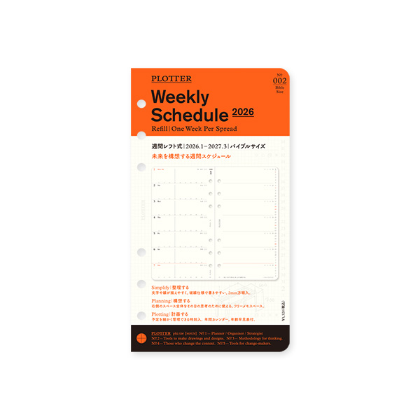 「PLOTTER」オリジナルのリフィル専用用紙を使った週間タイプのスケジュールリフィル。